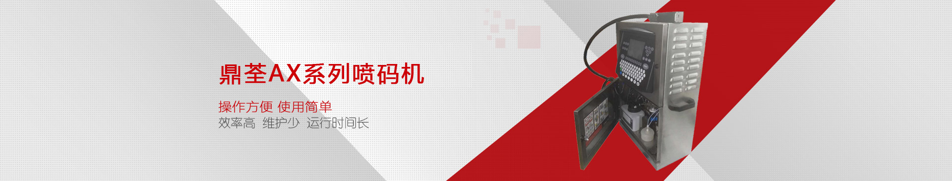 產(chǎn)品型號(hào): AX系列主要特點(diǎn):AX系列小字符噴碼機(jī)最高點(diǎn)陣可實(shí)現(xiàn)32點(diǎn)陣噴印,全中文操作界面,電路系統(tǒng),墨水系統(tǒng),噴頭、噴嘴經(jīng)過(guò)創(chuàng)新設(shè)計(jì),使噴碼機(jī)達(dá)到了更高的穩(wěn)定性。